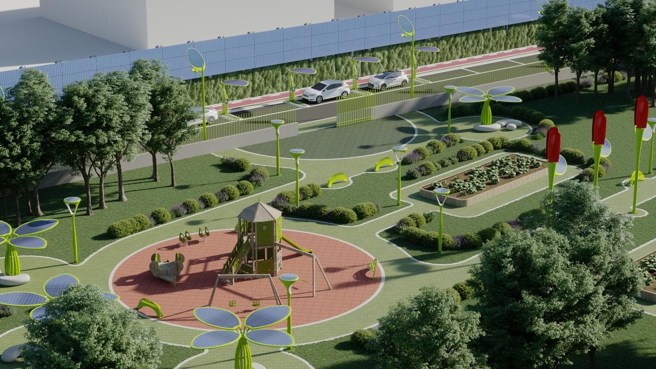 Il tutto auto alimentato da pannelli fotovoltaici ancorati alla barriera antirumore della ferrovia, pale eoliche di design e illuminazione fotovoltaica off-grid, grazie all’istallazione di una serie di scultorei elementi di arredo urbano smart: lanterne, quadrifogli e tulipani per un totale di 80kWp. L’unico futuro possibile per le nostre città sarà perseguire l’ecosostenibilità, partendo proprio dalle periferie, il Parco della Gioia della Magliana, sarà il vero riscatto della periferia romana.